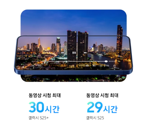 또한 1시간 더 동영상을 제공하는 S25+를 통해 배터리 수명도 향상됩니다.