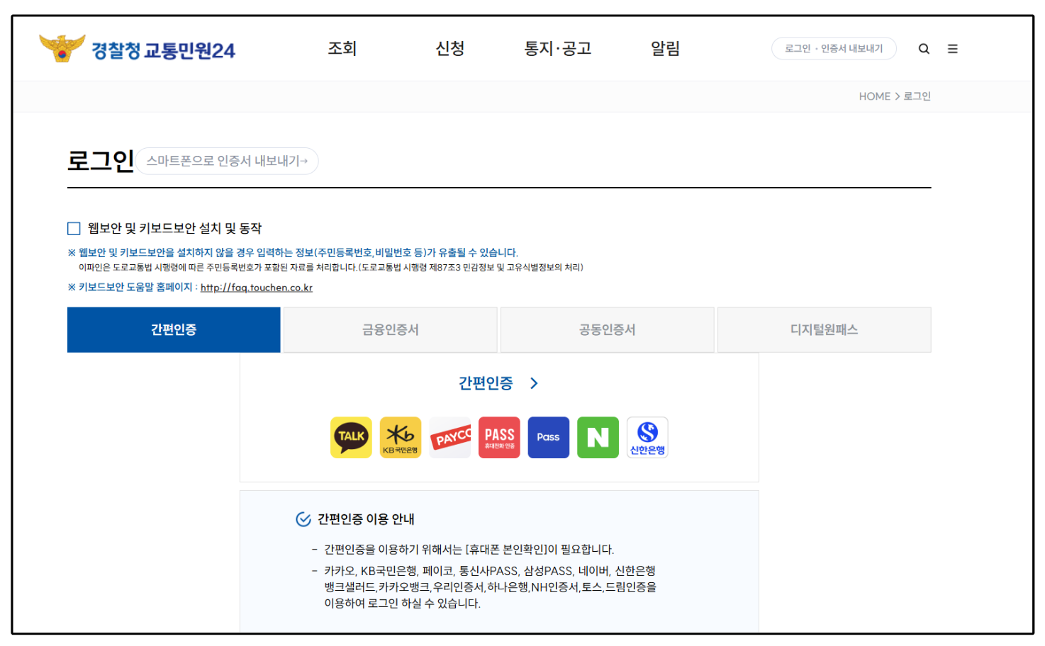 가. 교통민원24(이파인) 웹사이트 과속 단속 조회 방법
