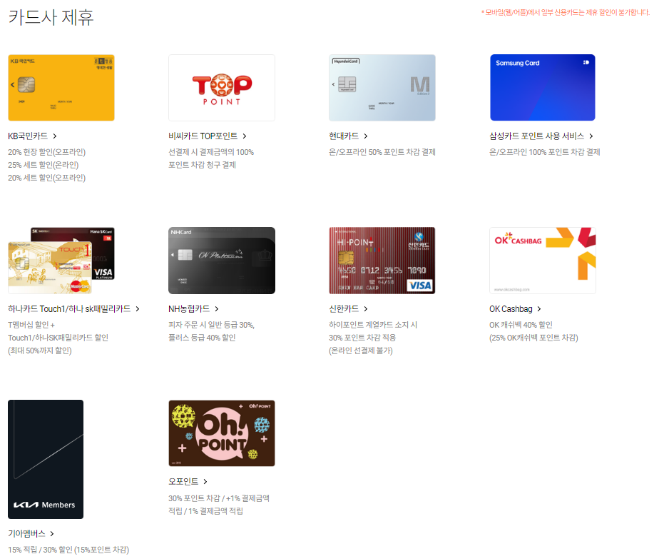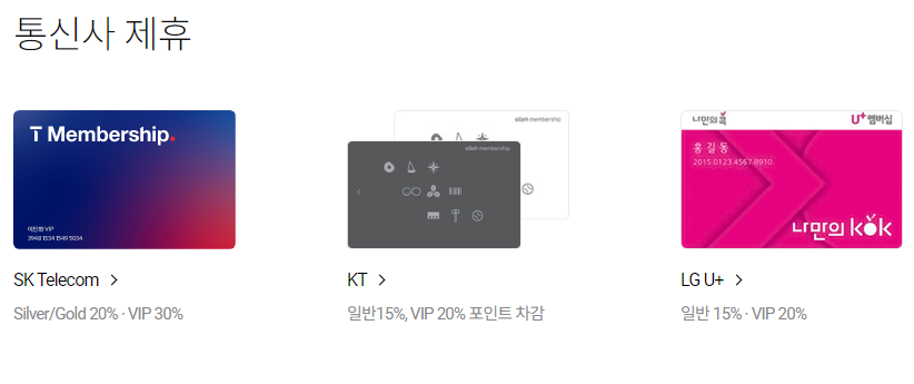 2. 기본으로 제공되는 통신사, 카드사 제휴 할인