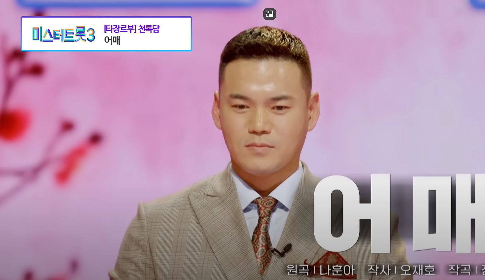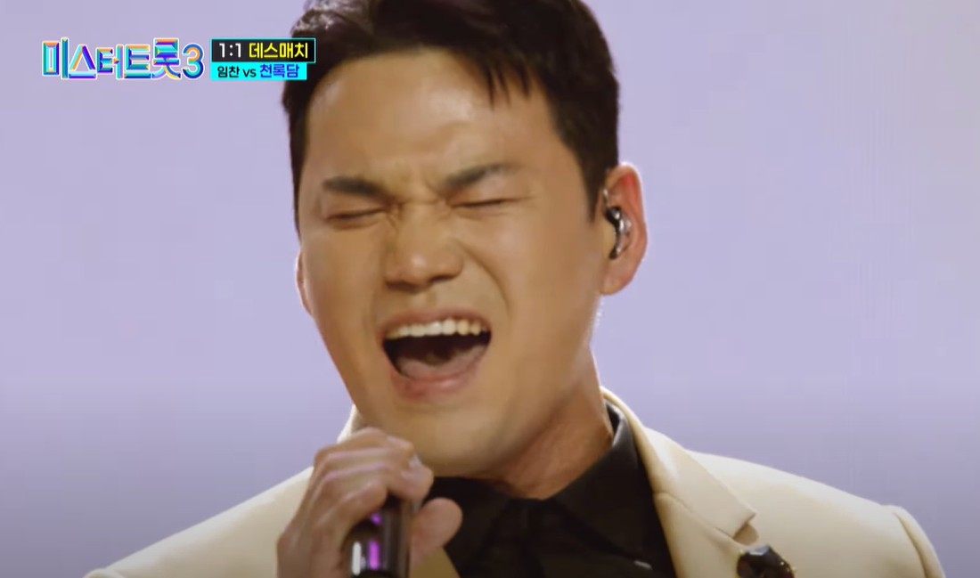 미스터트롯3 6화 1:1 데스매치에서 트롯 신인 이정(천록담)은 진성의 님의 등불로 7년차 현역 임찬과 맞붙었습니다.