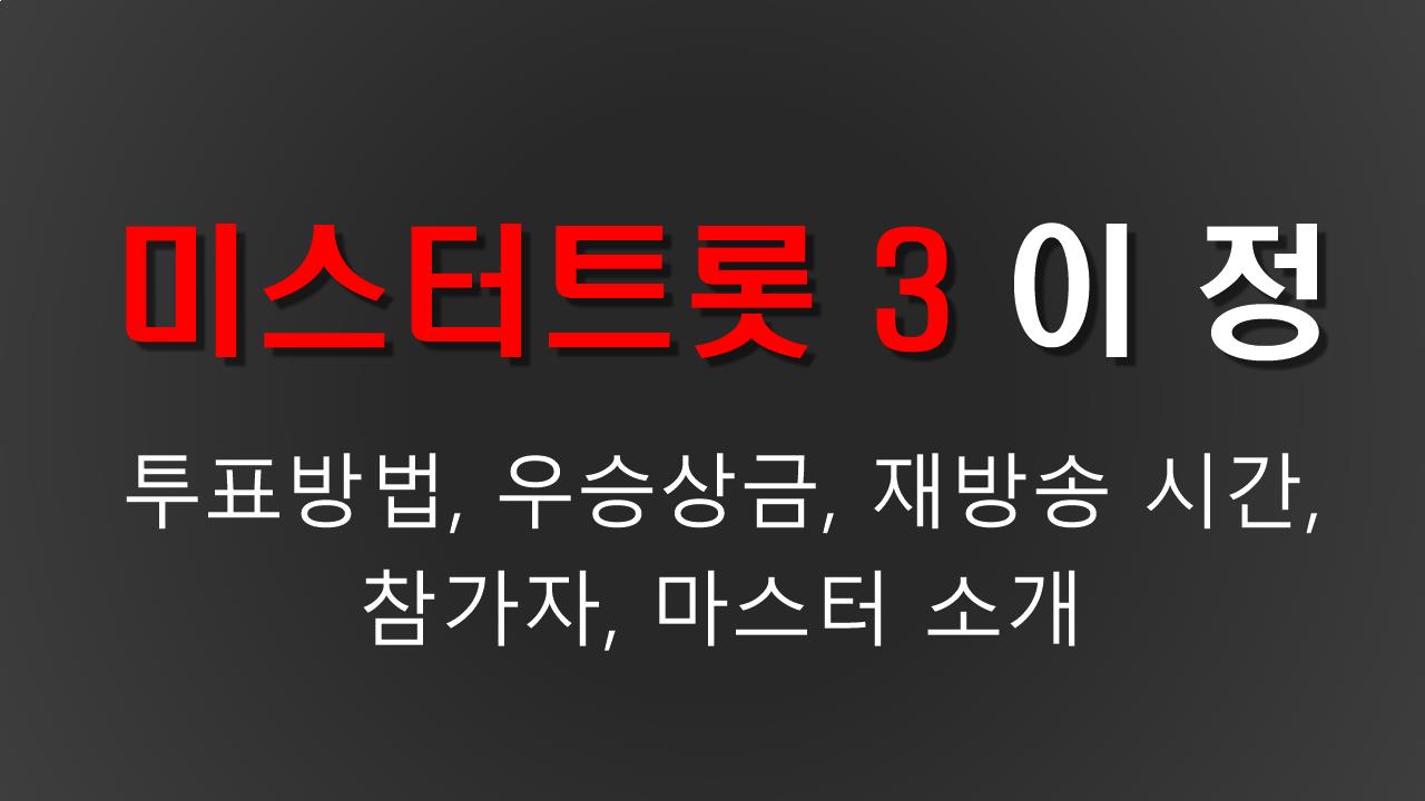 따라서 이번 포스팅에서는 미스터트롯3 화제의 인물 이정, 투표방법, 우승상금, 재방송시간, 참가자, 그리고 마스터에 대하여 자세히 소개해 드리겠습니다.
