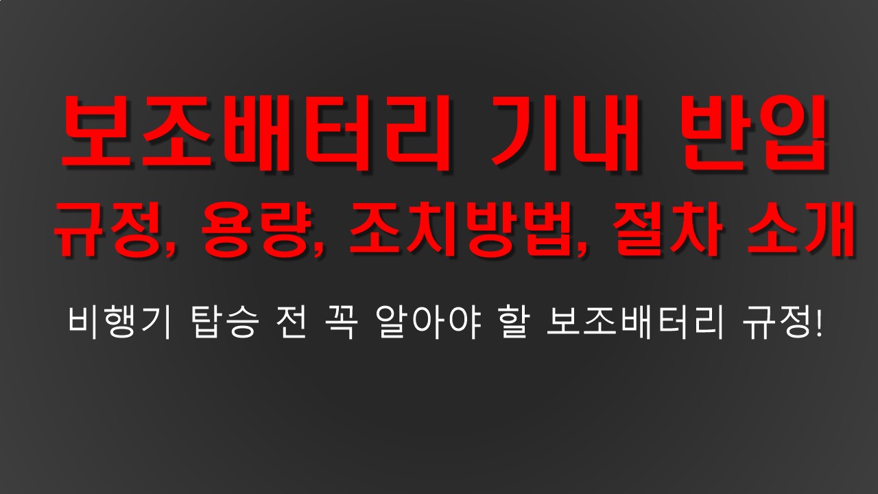 이처럼 보조배터리의 기내 반입 규정을 정확히 이해하고 준비하는 것이 편리하고 안전한 여행을 시작할 수 있습니다.