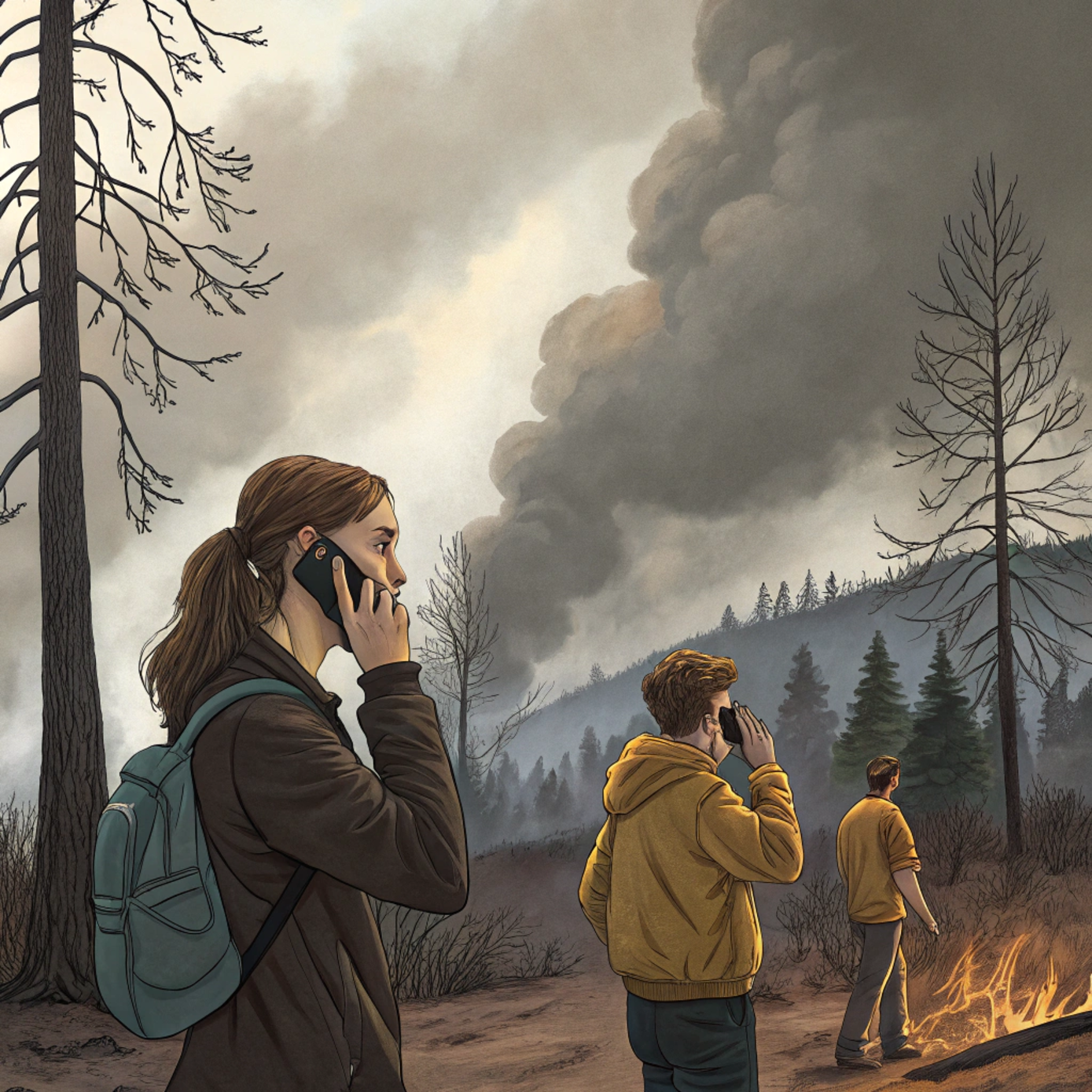 지역 대피 안내를 확인하고 이웃에게 산불 상황을 알려 신속히 대피할 수 있도록 돕습니다.
