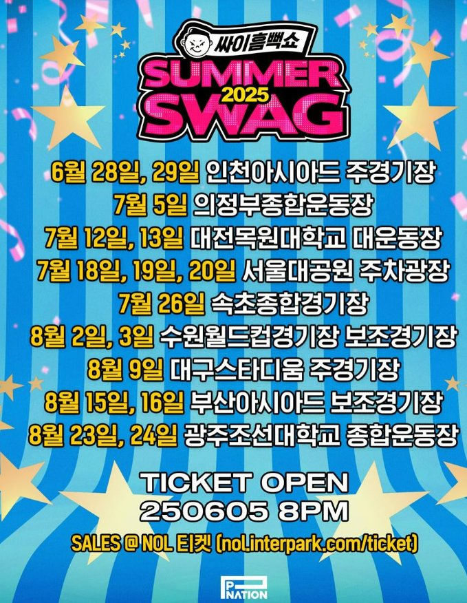 매년 여름을 뜨겁게 달구는 싸이 흠뻑쇼 2025(SUMMER SWAG)가 어김없이 돌아왔습니다.