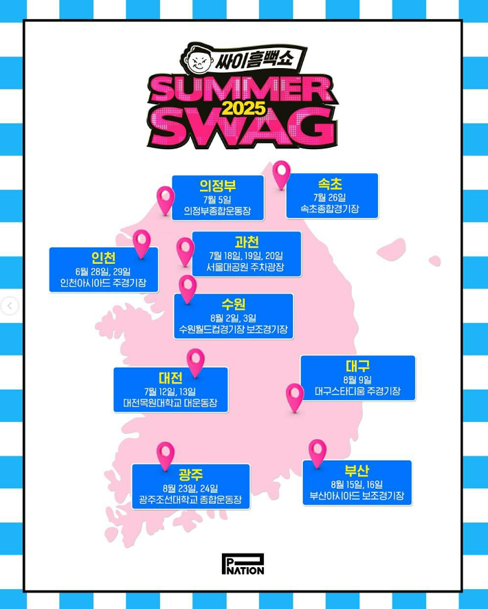 올해 역시 전국 9개 지역에서 총 18회에 걸쳐 펼쳐지는 대규모 투어로 관객들을 찾아가며 폭발적인 라이브 무대와 물폭탄 퍼포먼스, 그리고 싸이 특유의 유쾌한 에너지가 어우러져 단순한 공연을 넘어선 여름의 레전드를 다시 한 번 예고하고 있습니다.