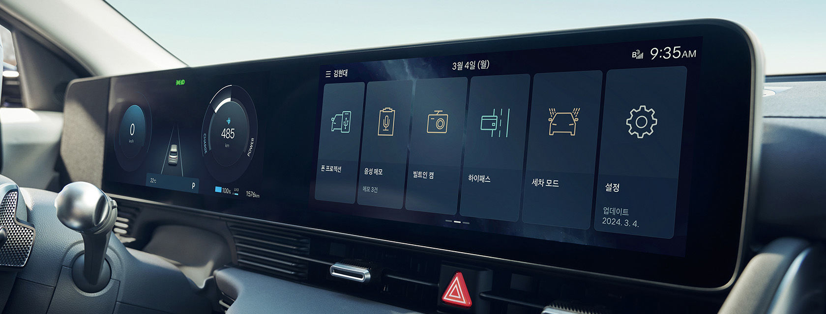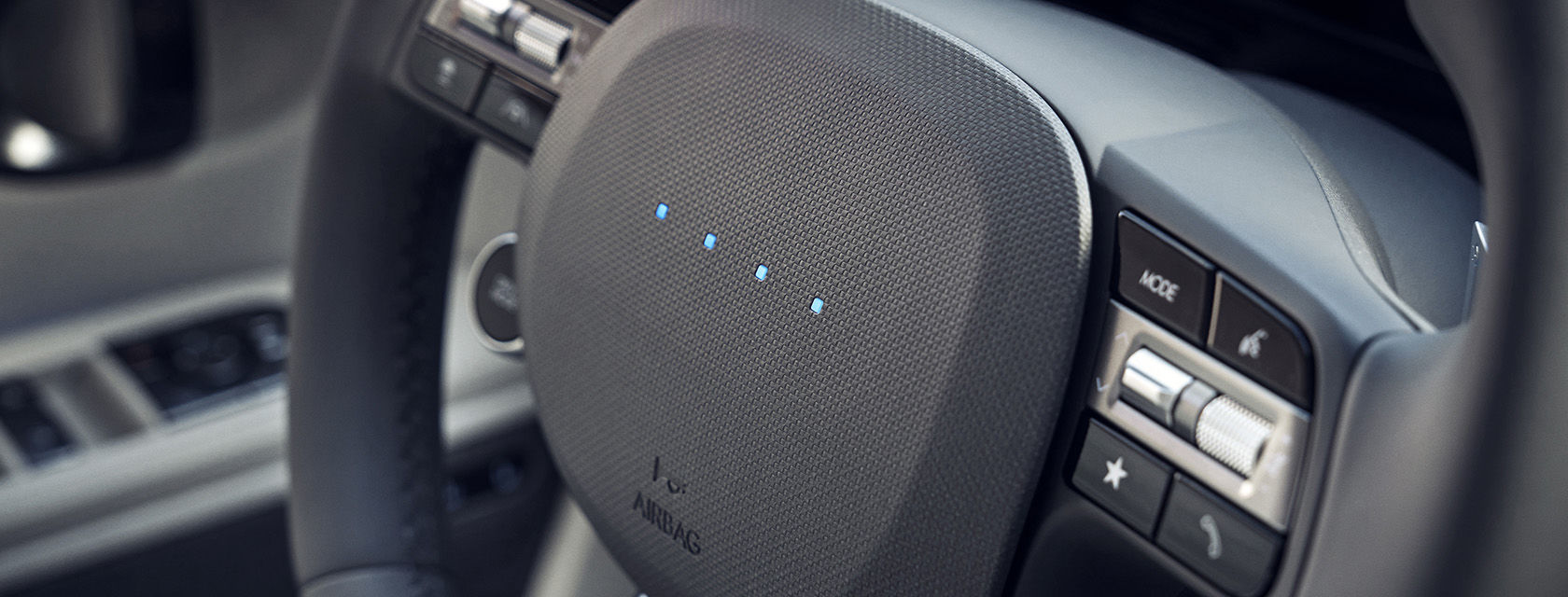 시동 On, 충전 중, 후진 중을 나타내는 인터랙티브 픽셀 라이트가 포함되었고 신규 디자인이 적용된 스티어링 휠에 인터랙티브 픽셀 라이트를 적용하여 차량의 다양한 상태를 표시해 줍니다.