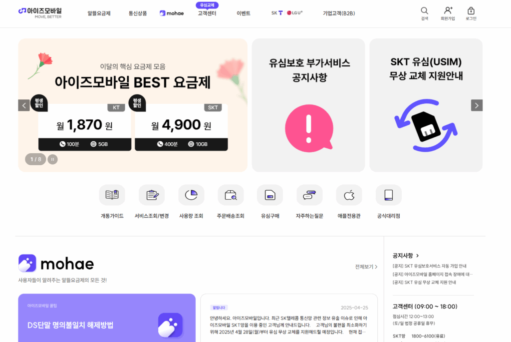 아이즈모바일 공식 홈페이지에서 간편하게 가입이 가능하며 가입 전 유심 호환 여부 확인은 필수입니다.