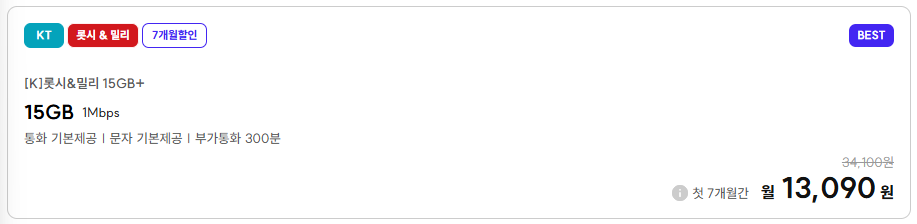 ✔️ 요금제명 : [K]롯시&밀리 15GB+