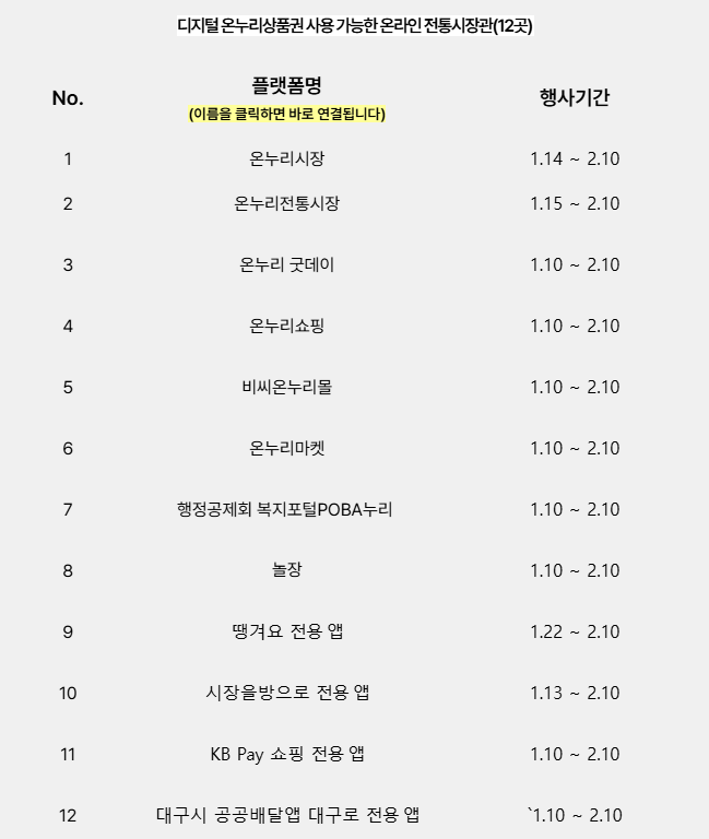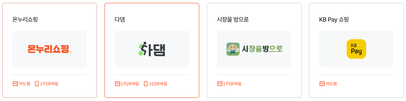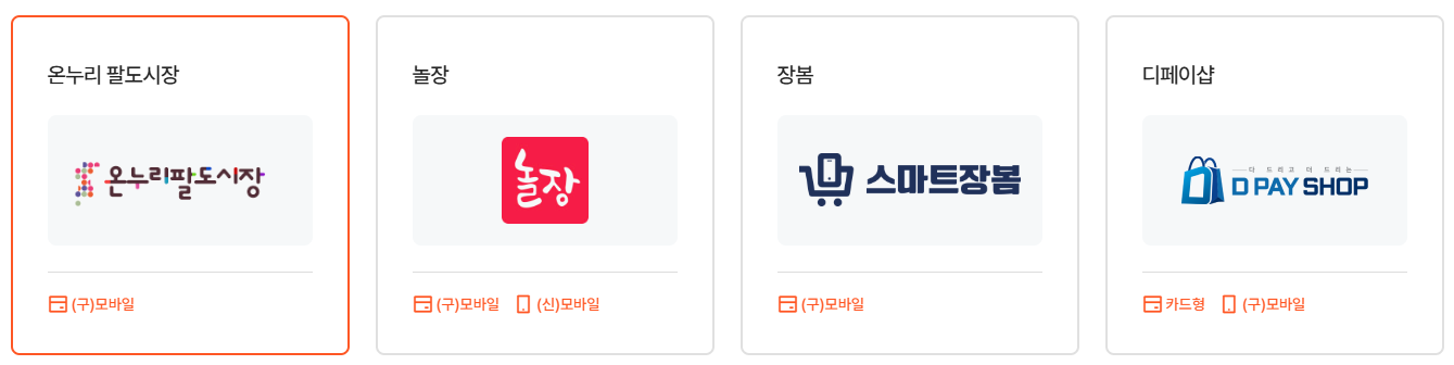각각의 온라인 사용처 이동은 아래의 버튼을 클릭하여 주시기 바랍니다.