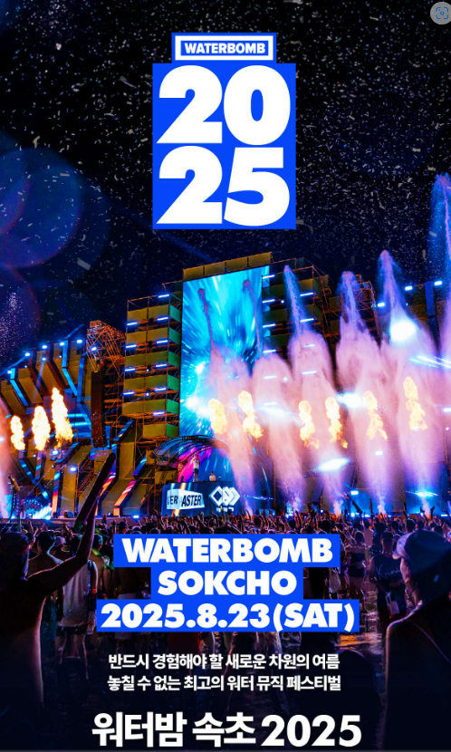 속초에서 국내 최대 규모의 여름 페스티벌인 2025년 워터밤을 개최합니다.