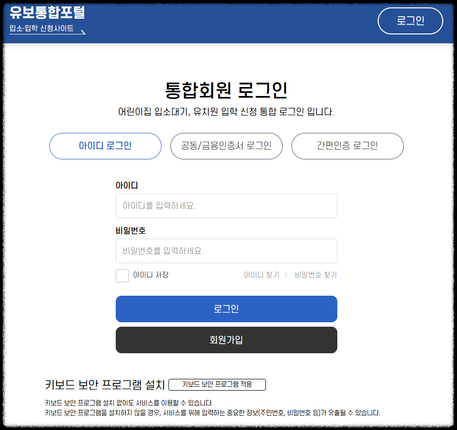 ※ 2024년부토 입소 및 입학신청 사이트에서 학부모 사전 회원가입 가능