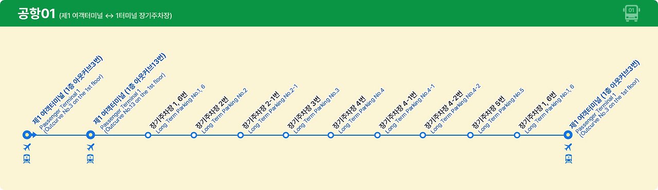 1) 제1 여객터미널 ↔ 1터미널 장기주차장