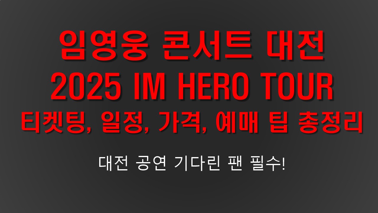 따라서 이번 포스팅에서는 임영웅 콘서트 대전 2025 IM HERO TOUR 공식 예매처, 가격, 장소, 예매 팁까지 모든 정보를 정리해 드립니다.
