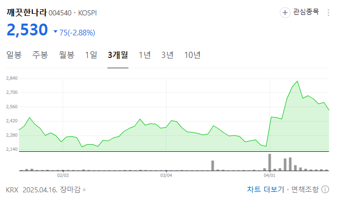 2025년 4월 7일 출산장려 관련주 깨끗한나라는 5.38% 상승하여 거래되었습니다.