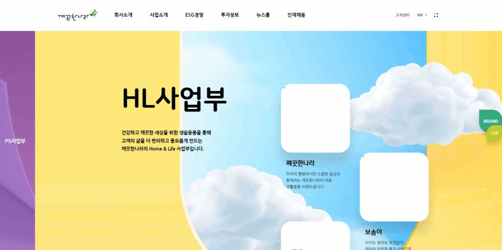 깨끗한나라는 생활용품 및 위생용품 제조 분야에서 국내를 대표하는 전문 기업으로 청결과 위생을 중요시하는 현대인의 생활을 보다 편리하고 쾌적하게 만들기 위한 다양한 제품을 제공합니다.
