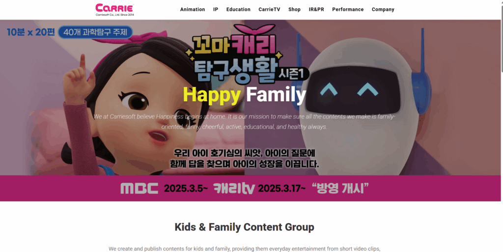 또한 어린이 교육용 애플리케이션, 인터랙티브 콘텐츠, 게임 기반 학습 등 다양한 디지털 콘텐츠를 제공하며 특히 캐리키즈라는 브랜드로 알려진 어린이 콘텐츠는 교육적 요소와 재미를 결합하여 학습 효율성을 높이고 어린이들이 자연스럽게 기술적 사고와 문제 해결 능력을 키울 수 있도록 설계되었습니다.