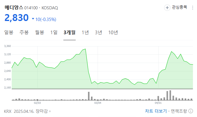 2025년 4월 7일 출산장려 관련주 메디앙스는 13.71% 상승하였습니다.