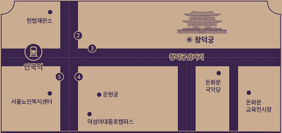 예매하신 티켓의 접수 장소는 창덕궁 돈화문 앞 안내 데스크에서 가능하며 행사 시간 10분 전에 안내데스크에서 접수를 시작합니다. 만약 입장시간이 경과되면 참여에 제한이 있을 수 있으니 반드시 시간을 준수하시기 바랍니다.