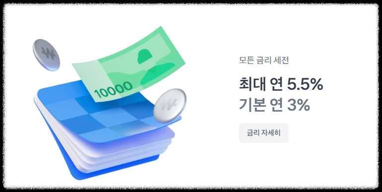 금리는 최대 5.5%로 기본금리 연 3.0%, 우대금리는 자동이체로 저금을 모두 성공하면 연 2.5%를 추가로 지급하지만 만약 1번이라도 자동이체 저금에 실패한다면 우대금리는 적용되지 않습니다.