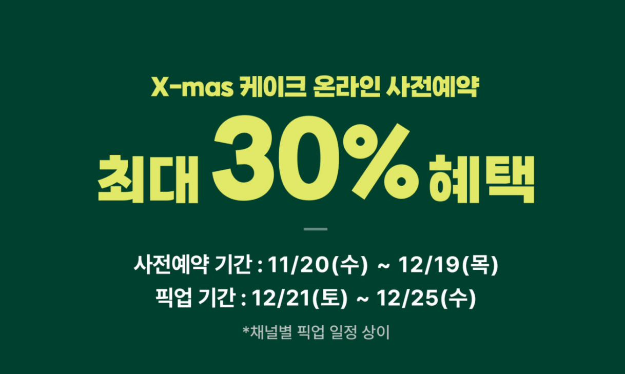 파리바게뜨는 매년 크리스마스를 기념해 할인된 가격으로 케이크 사전예약을 시행하고 있습니다.