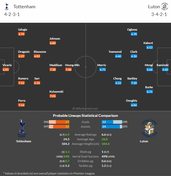 4. 토트넘 vs 루턴 타운 선발 라인업