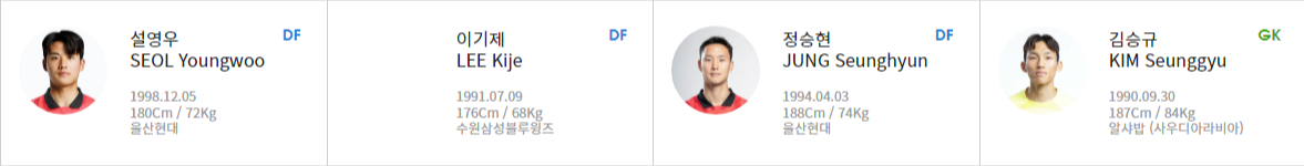 : 김영권, 정승현, 김태환, 설영우(이상 울산HD),