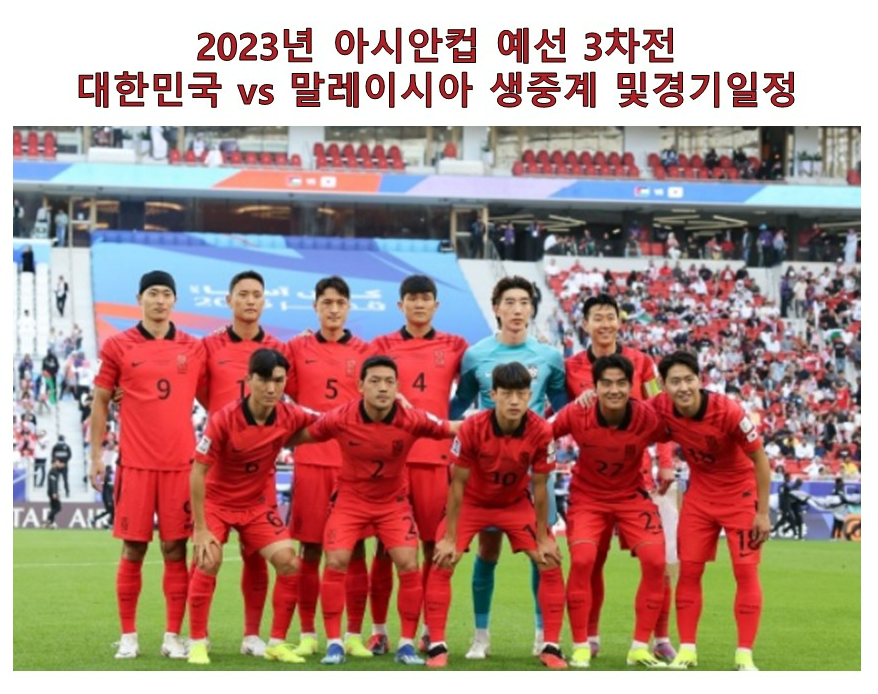 2023 아시안컵 예선 3차전 대한민국 vs 말레이시아 생중계 정보