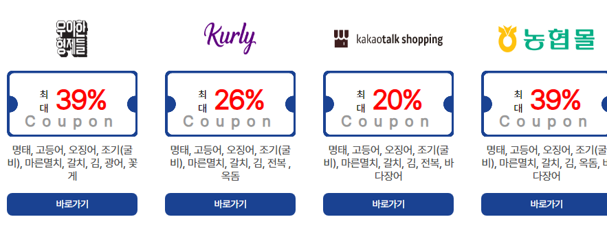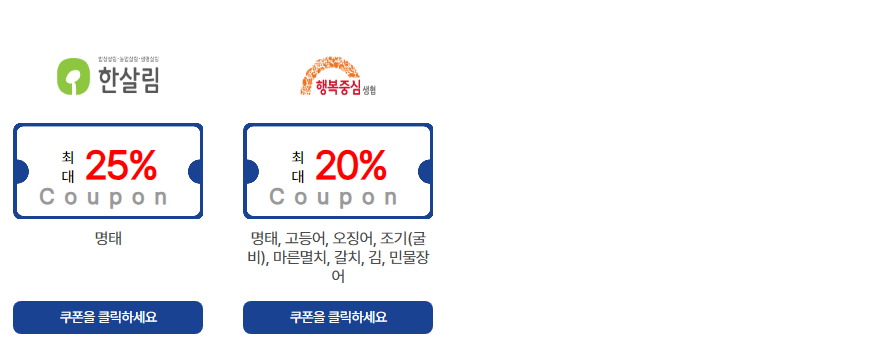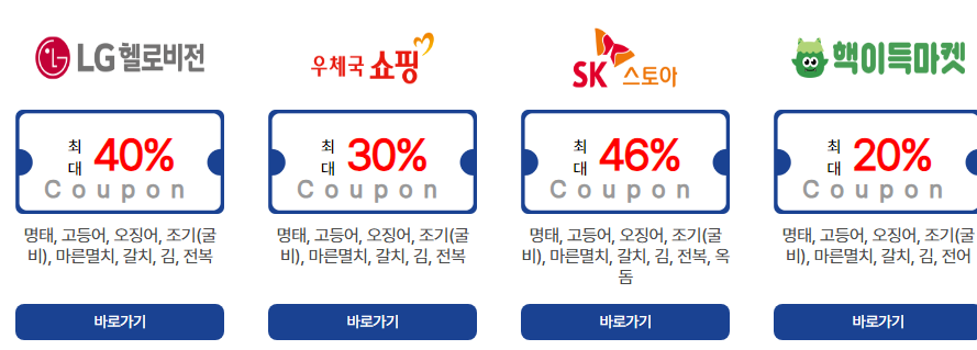 명태, 고등어, 오징어 등을 구매할 경우 최대 69%의 쿠폰을 지급하고 있으니 행사 내용에 대하여 자세히 설명해 드리겠습니다.