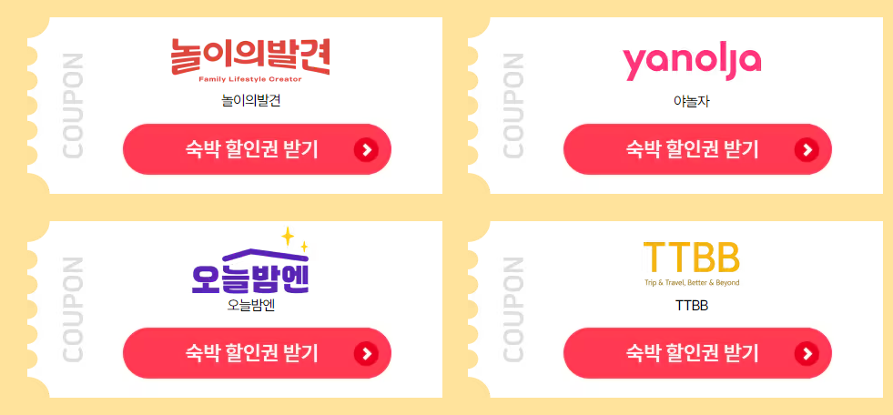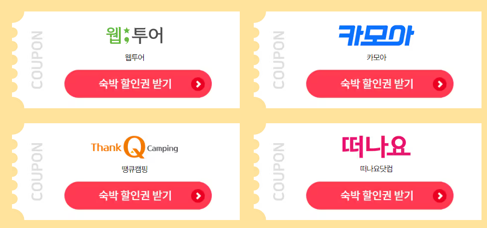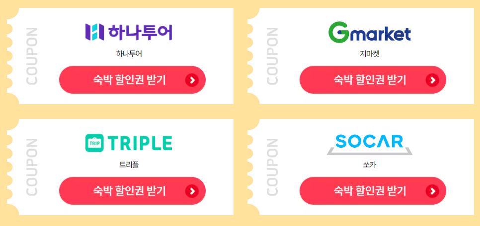 숙박 할인권을 발급받을 수 있는 온라인 여행사는 아래와 같습니다.