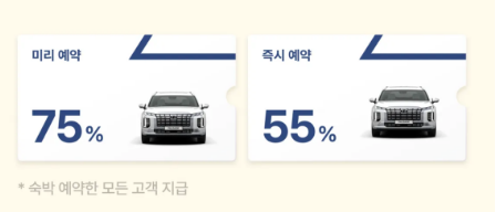 그리고 사용조건은 7일 후 이용할 차 대여와 동시에 24시간 이상 차를 대여할 경우로 만약 8월 26일에 미리 예약 할인 쿠폰을 사용하고자 한다면 7일 후인 9월 2일부터 75% 할인된 금액으로 대여가 가능합니다.