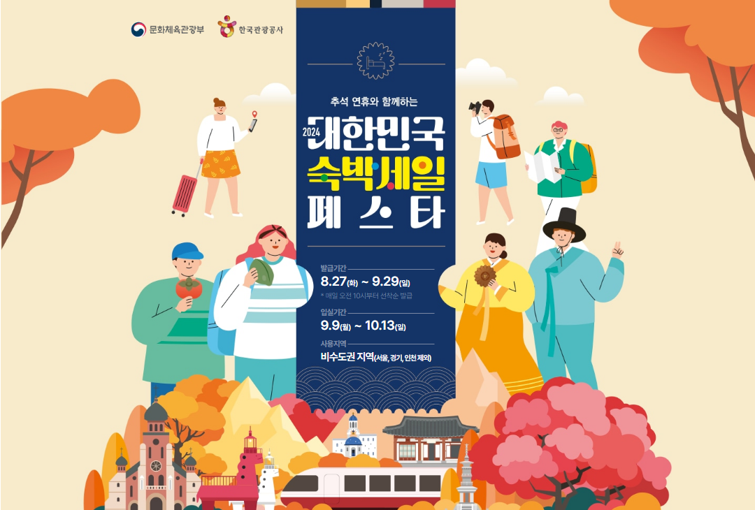 이번 추석 연휴에 국내 여행을 계획하고 계신 분들을 위해 국가에서 2024 대한민국 숙박세일 페스타 행사를 개최합니다.