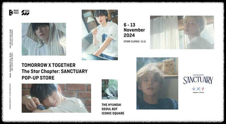 TOMORROW X TOGETHER 미니 7집 'The Star Chapter: SANCTUARY' 발매 기념 팝업 스토어를 오픈하였습니다. 앨범을 비롯한 팝업 스토어 단독 상품 및 특전 등을 받을 수 있는 다양한 이벤트를 즐겨보시기 바랍니다.