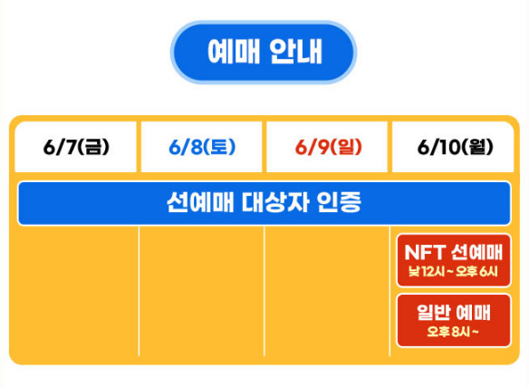그리고 선예매 기간은 2024년 6월 10일 월요일 낮 12시부터 2024년 6월 10일 월요일 오후 6시까지이며 PSYger NFT 및 선예매와 관련된 자세한 절차 및 사항은 아래의 링크를 통해 자세히 확인할 수 있습니다.