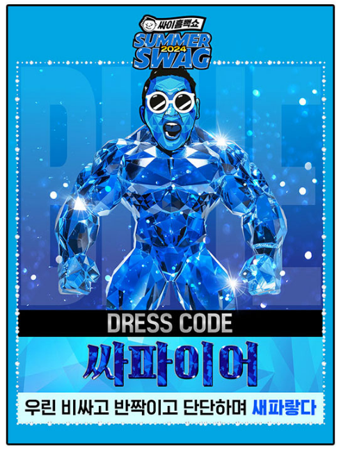 싸이 흠뻑쇼 광주 콘서트에서는 물에 흠뻑 맞는 것을 대비하여 주최 측에서물에 옷이 젖는 것을 막아주는 파란 우비와 소지품을 보관할 수 있는 파란 비닐 백팩을 제공하며 드레스코드는 블루계열의 의류를 준비하시기 바랍니다.