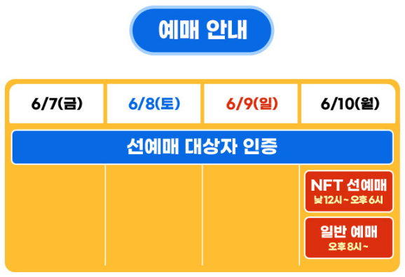 그리고 선예매 기간은 2024년 6월 10일 월요일 낮 12시부터 2024년 6월 10일 월요일 오후 6시까지이며 PSYger NFT 및 선예매와 관련된 자세한 절차 및 사항은 아래의 링크를 통해 확인할 수 있습니다.