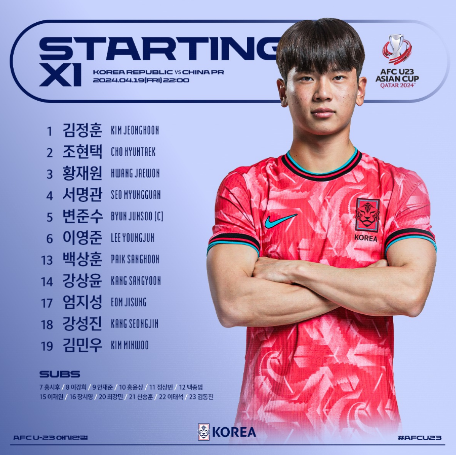 3. 2024 AFC U-23 카타르 아시안컵 대한민국 vs 일본 예상선발 라인업