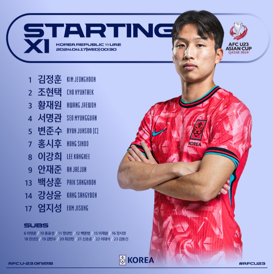 3. 2024 AFC U-23 카타르 아시안컵 대한민국 vs 중국 예상선발 라인업