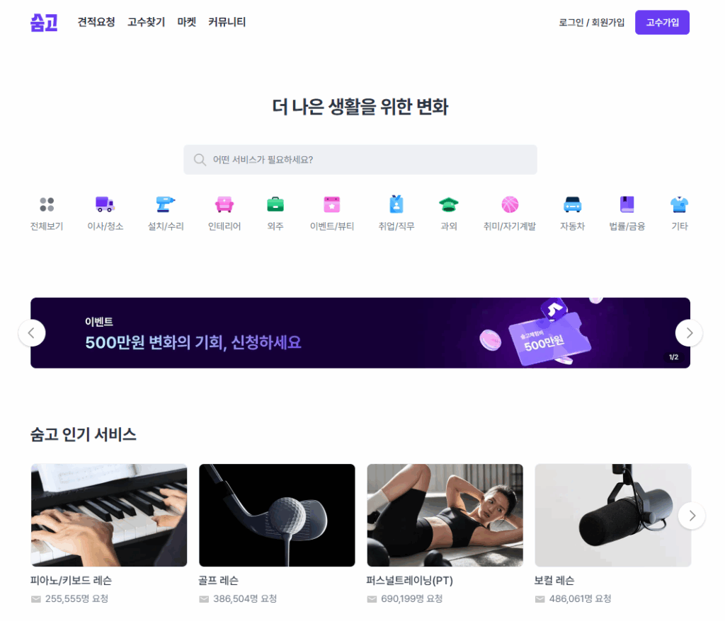 한편 숨고는 앱 설치 없이도 모바일 웹에서 쉽게 이용이 가능합니다.