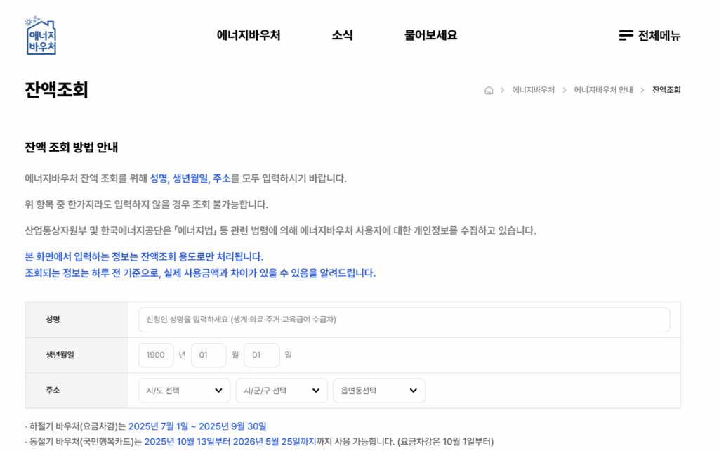 10. 에너지바우처 잔액조회 방법