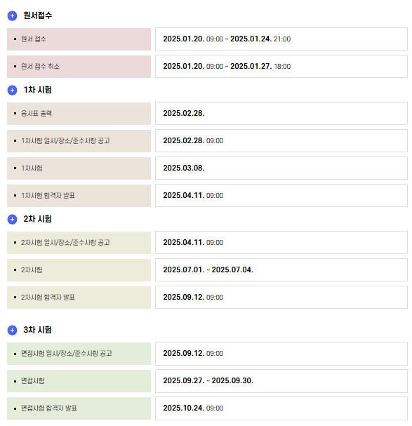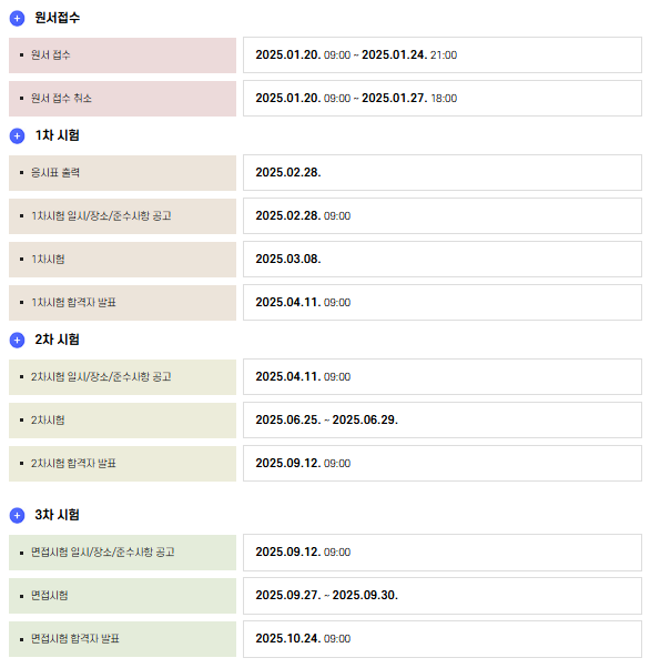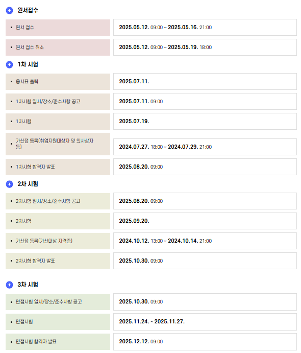 2025년 공무원 시험의 주요 일정은 아래와 같습니다