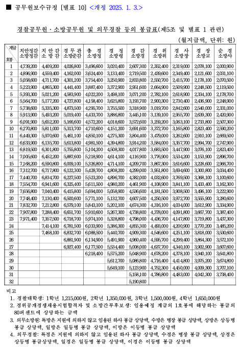 1. 2025 소방공무원 봉급표