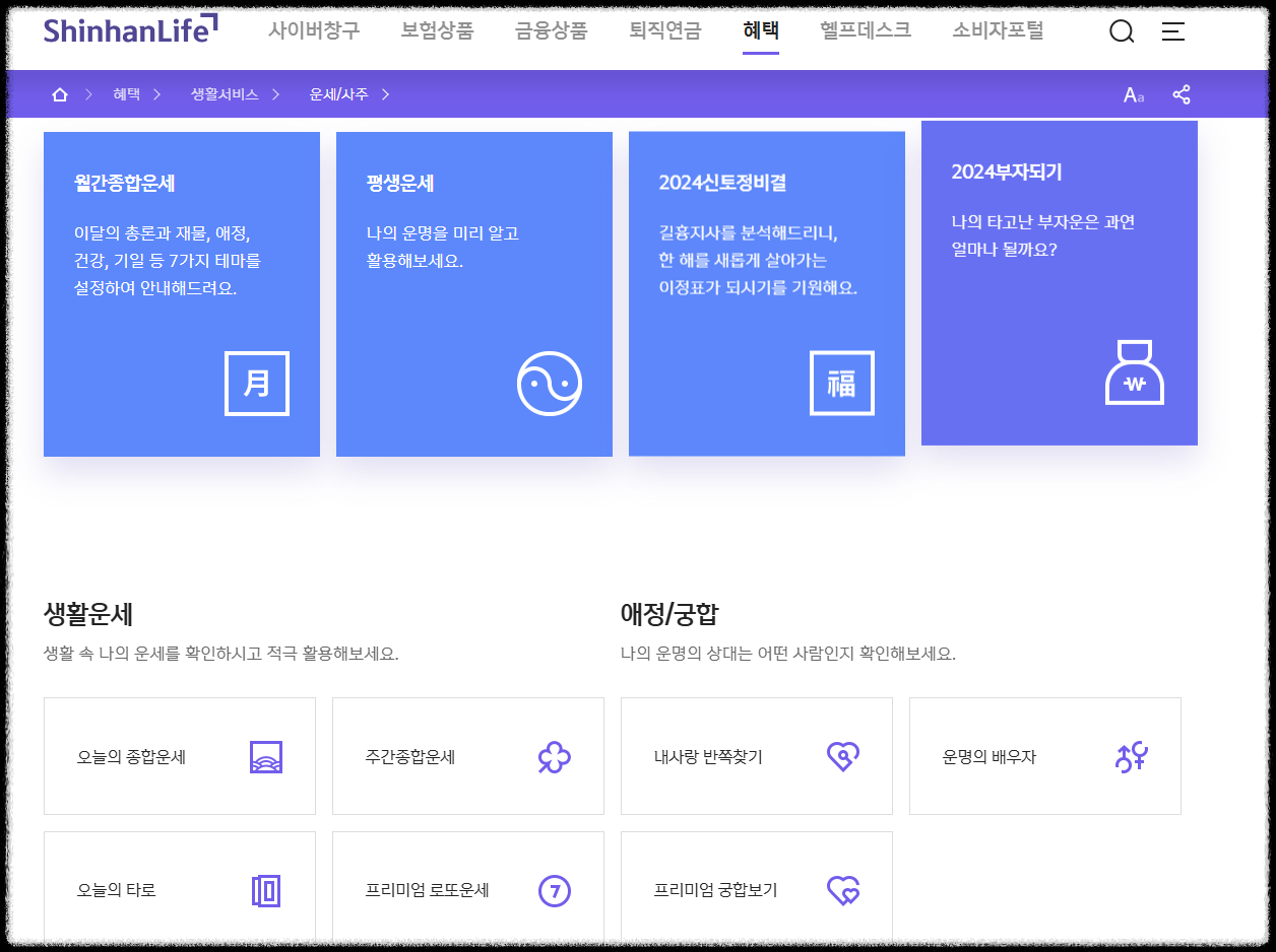 신한라이프 신년운세 웹사이트는 신뢰할 수 있는 신한 보험사에서 제공하는 운세 서비스로 다양한 운세 정보를 제공합니다.