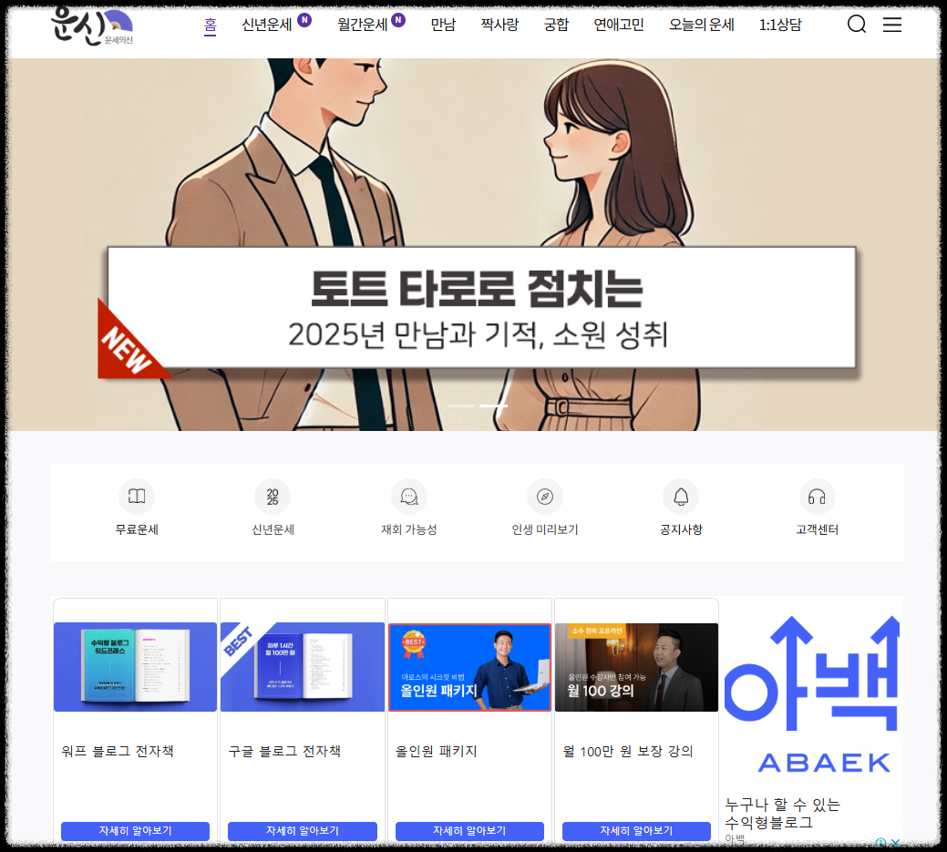 운세의 신 웹사이트는 수년간 다양한 운세 콘텐츠를 통해 높은 신뢰를 쌓아온 전문 운세 플랫폼으로 동양과 서양 점성술을 아우르는 깊이 있는 분석이 특징입니다.