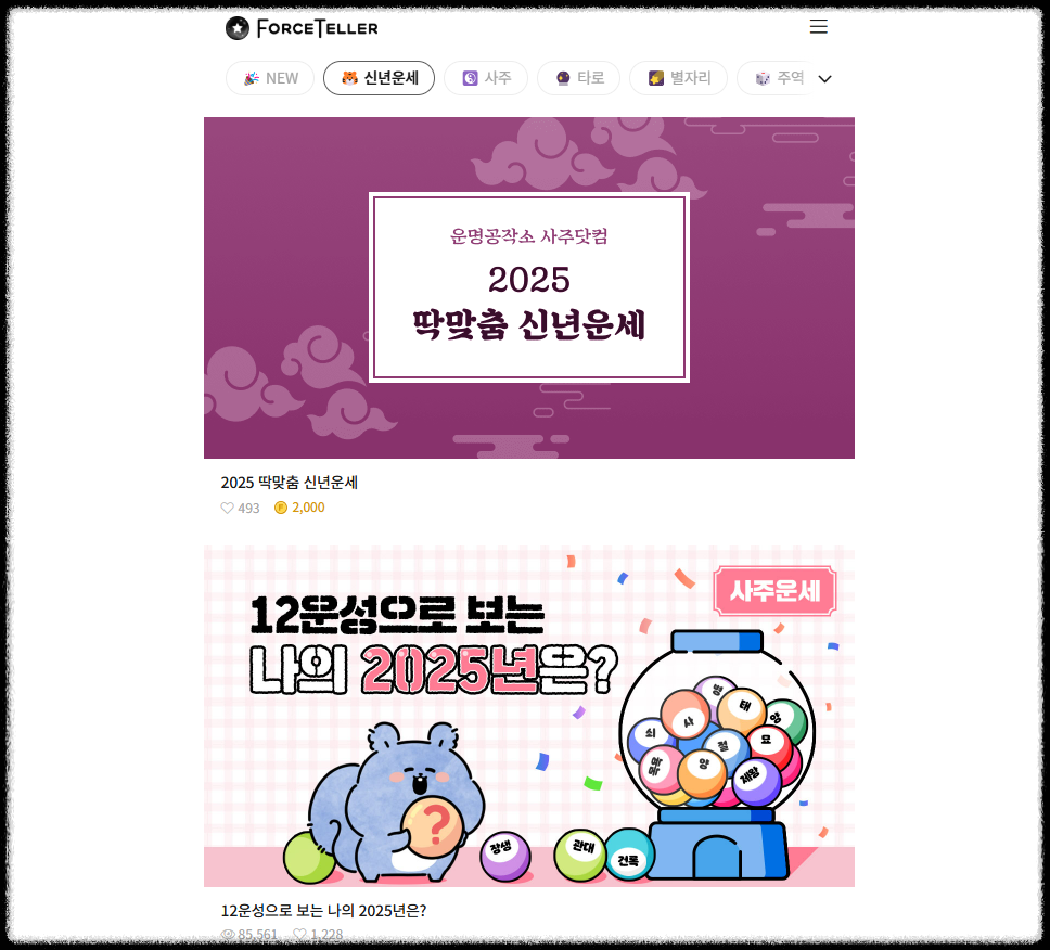각 사이트마다 제공하는 신년운세의 서비스와 특징이 다릅니다.