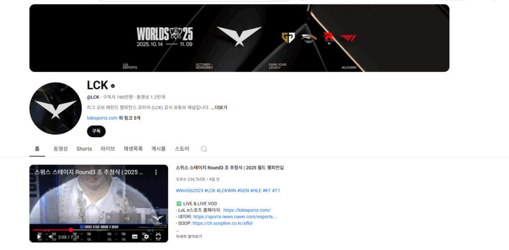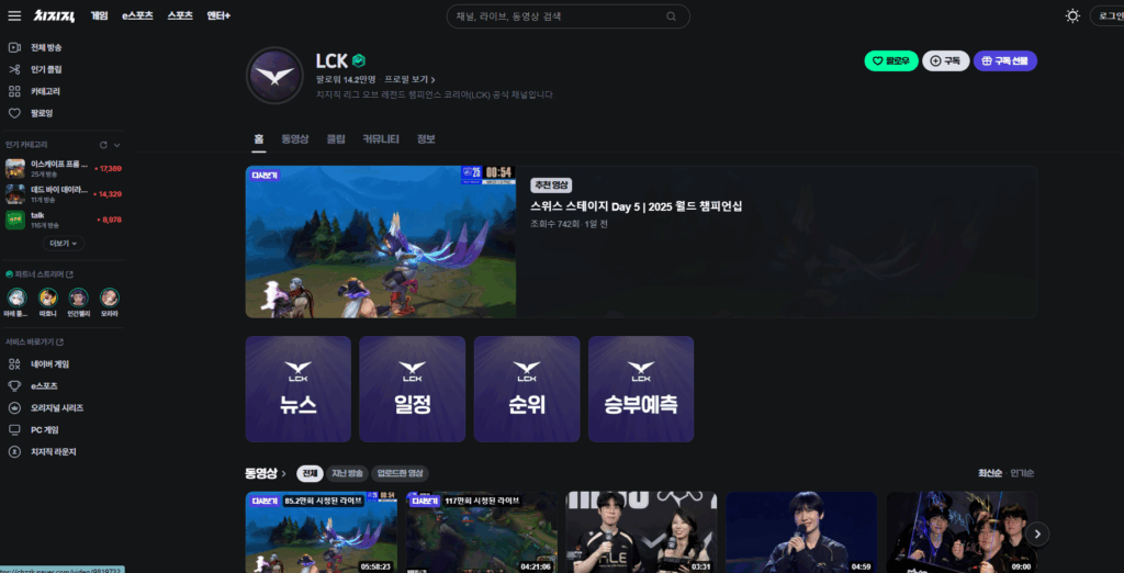 유튜브 LCK / 네이버 치지직 / SOOP / 트위치 LCK 공식채널