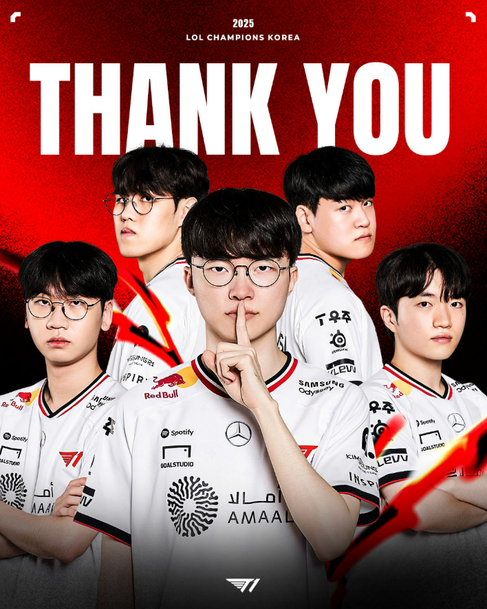 T1은 2025 롤드컵에서 디펜딩 챔피언으로 출전했지만 현재 8강 진출을 위해 남은 두 경기를 모두 승리해야 하는 상황에 놓였습니다.