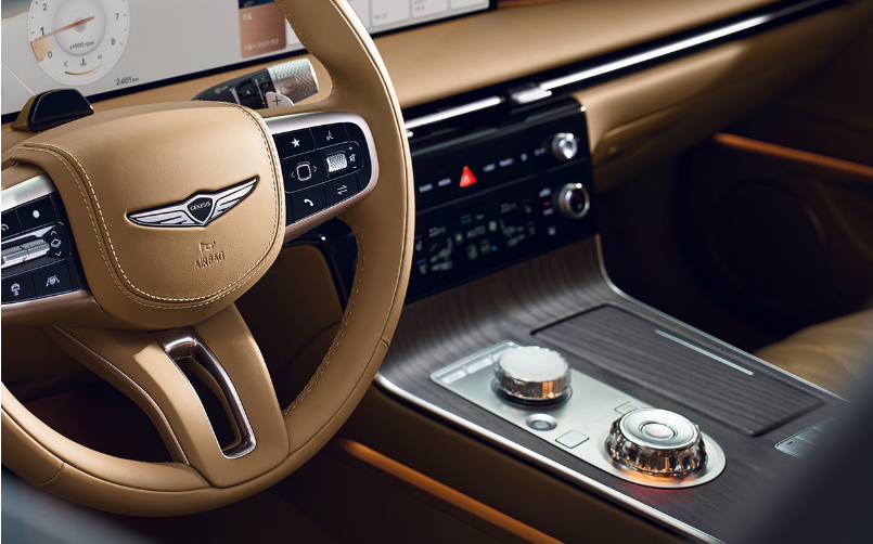 G80 페이스리프트의 기본사양으로 스티어링 휠 양쪽에 있는 패들 쉬프트를 사용하면 기어를 간편하게 조작해 단계 별로 변속하거나 감속할 수 있고 8단 자동변속기는 정교한 응답 성능과 부드러운 변속감을 제공합니다.