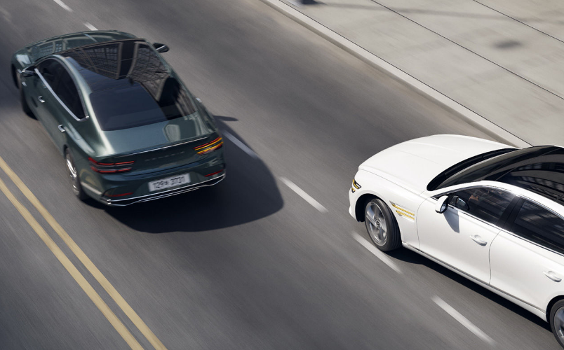 드라이빙 어시스턴스 패키지 II 선택 시 적용되는 옵션으로 차로 변경 중 후측방 차량과 충돌 위험이 높아지면 경고를 해주고 경고 후에도 충돌 위험이 높아지면 자동으로 차량을 제어하여 충돌 회피를 도와줍니다.