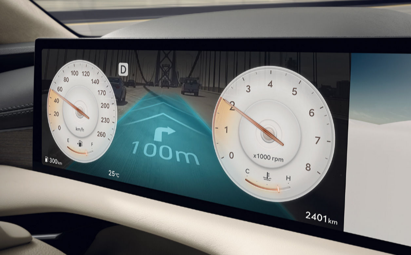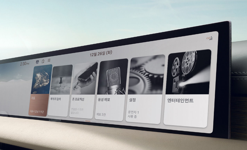 오디오/비디오 내비게이션(AVN)과 클러스터를 통합하여 페이스리프트 전 모델보다 30% 더 확장된 시야를 제공합니다. 그리고 음성 인식을 통해 디스플레이를 터치하지 않고 시트 열선, 에어컨과 창문 등의 기능 제어가 가능합니다.