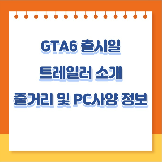 그럼 게임 유저들에게 많은 관심을 받고 있는 GTA6의 트레일러 소개와 출시일, PC 사양 등을 확인해 보도록 하겠습니다.